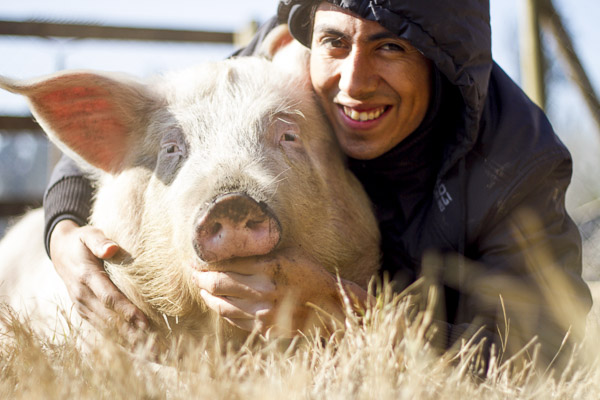 Antes de iniciar el Santuario Igualdad, ver el documental “Earthlings” nos remeció de tal manera, que pocas semanas después nos unimos a un grupo de activistas que trabajaba en defensa de los animales de granja. Juntos hicimos muchas cosas, pero la que cambió nuestra vida por completo fue la realización de un rescate de dos cerditos desde un galpón de crianza industrial. Los recibimos en nuestra antigua casa, y les nombramos Gary y Oliver.