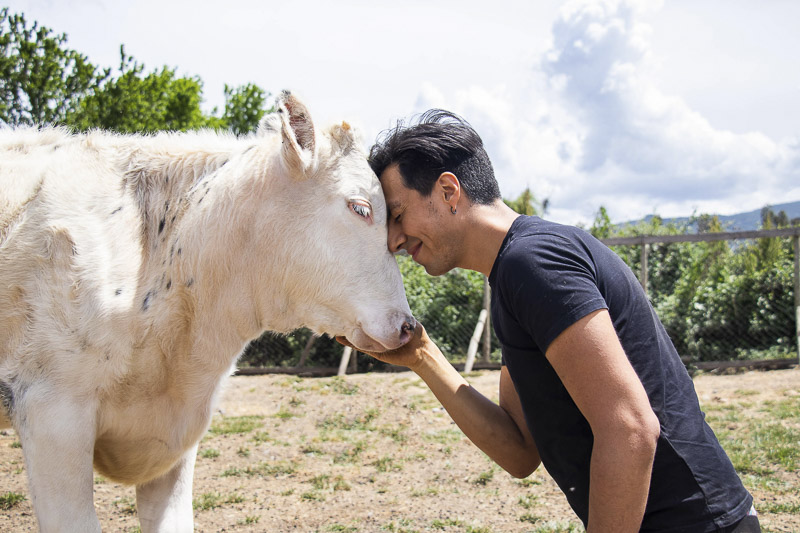 El Santuario Igualdad está en El Monte, a las afueras de Santiago de Chile. Es un lugar muy especial porque allí, un par de humanos se propuso construir un espacio seguro para proteger las vidas de vacas, cabras, ovejas, cerditos y aves sobrevivientes a la industria ganadera, al maltrato, abandono y la crueldad.