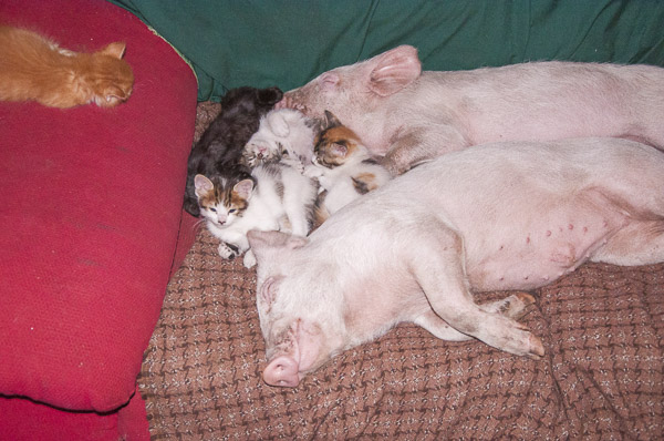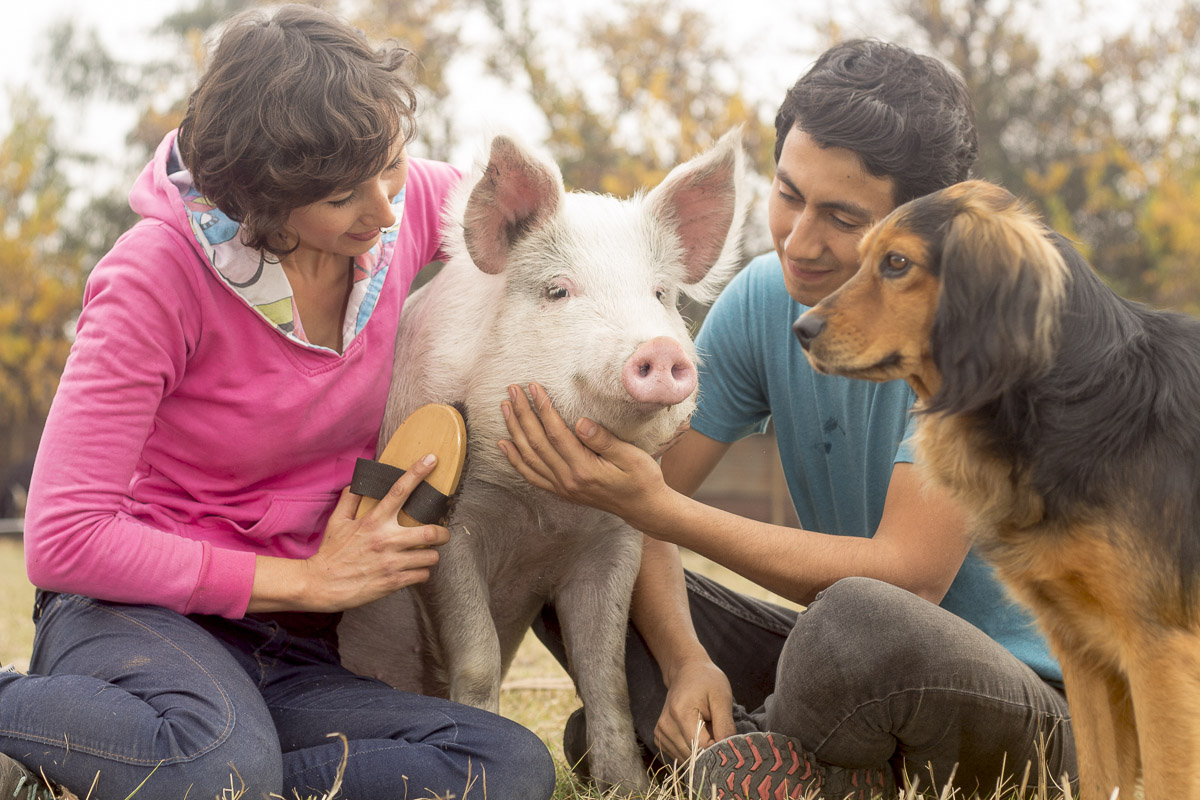 Gary y Oliver llegaron a un hogar donde ya había animales rescatados: Una gatita que Marisol rescató desde lo alto de un árbol, que hace pocos días había tenido a cuatro bebés. Otros tres gatitos que había rescatado Ariel, y que se sumaban a su gran compañera, la perrita Nena. Trabajando con el grupo de activistas, conocimos en primera persona la realidad que viven vacas, cabras, ovejas, cerdos, gallinas y pollitos. Viajábamos casi todos los fines de semana a documentar todo tipo de crueldad contra los animales dentro de la industria ganadera. Los otros días en casa, Gary y Oliver nos enseñaron que una vez superado el miedo, los traumas y la locura inducida por el encierro; los cerditos son tan inteligentes, cariñosos, sensibles y únicos como los perros y gatos que forman parte de nuestras familias.